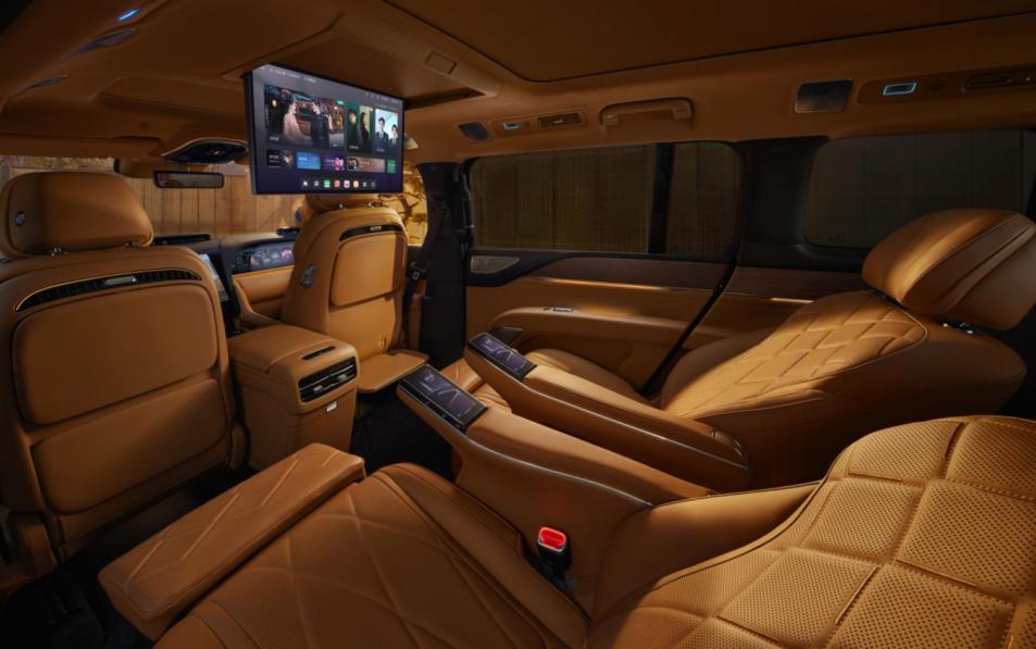 仰望U8L拥有鼎级空间表现,采用2+2+2灵活布局。二排双零重力座椅支持150°大躺角,配备脚托与18点按摩系统,消除疲惫,轻松上路。二排创新推出三种专属模式:云卧观影模式打造移动私人影院,一键舒躺模式提供安心休憩空间,全平躺椅模式变身双人沙发床。