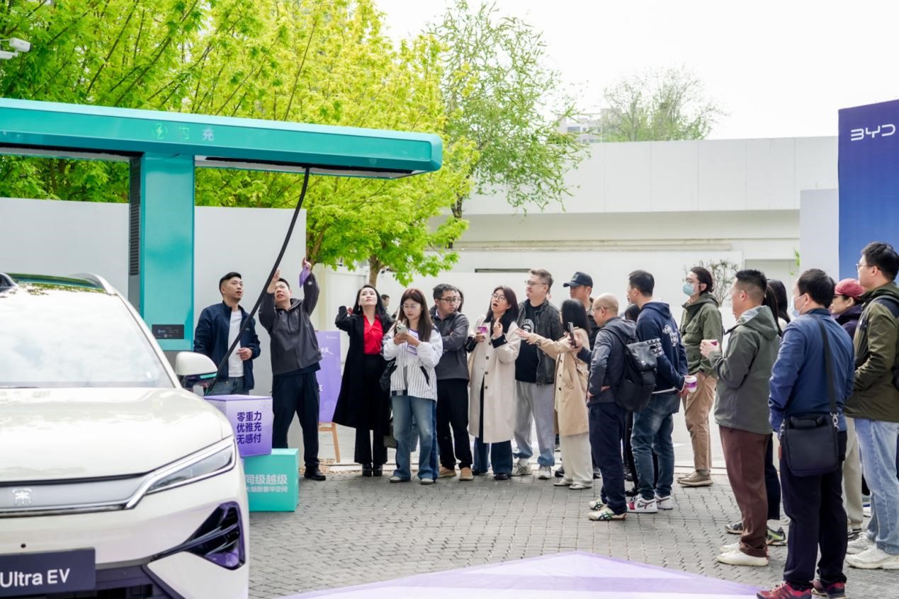 宋Ultra EV 搭载第二代刀片电池、闪充技术及激光雷达三大行业颠覆性技术。新车搭载的闪充技术带来出行新体验。常温下,5分钟电量告急秒“回血”,喝杯咖啡、刷会视频就能继续出发;9分钟从10%充到97%,节假日出行无需久留服务区。零下30℃也仅多3分钟。充电如加油,告别久等焦虑与规划,畅享纯电出行松弛感。现场特设一首歌的时间闪充体验区,嘉宾可现场直观感受,一曲唱罢,电量高效补能,闪充实力一目了然。